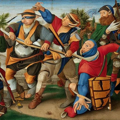 This geometrical representation underlies the way that the current generation of AI models perform many of their dazzling party tricks. It’s striking that the kind of scenarios where they excel are often interpolation problems (“draw Ninja Turtle Michelangelo in the style of artist Michelangelo” — see the image at the top of the post, “write a summary of Partygate in the style of Jane Austen”, “show me the UK Cabinet as superheroes” and so on).
